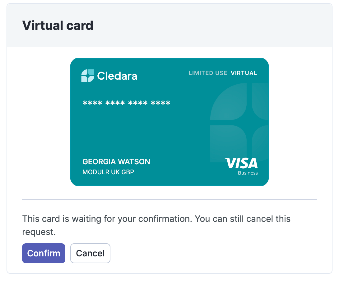 Whenever a Spend Admin orders a virtual or physical card, the cardholder must confirm the order for the card to be formally issued.